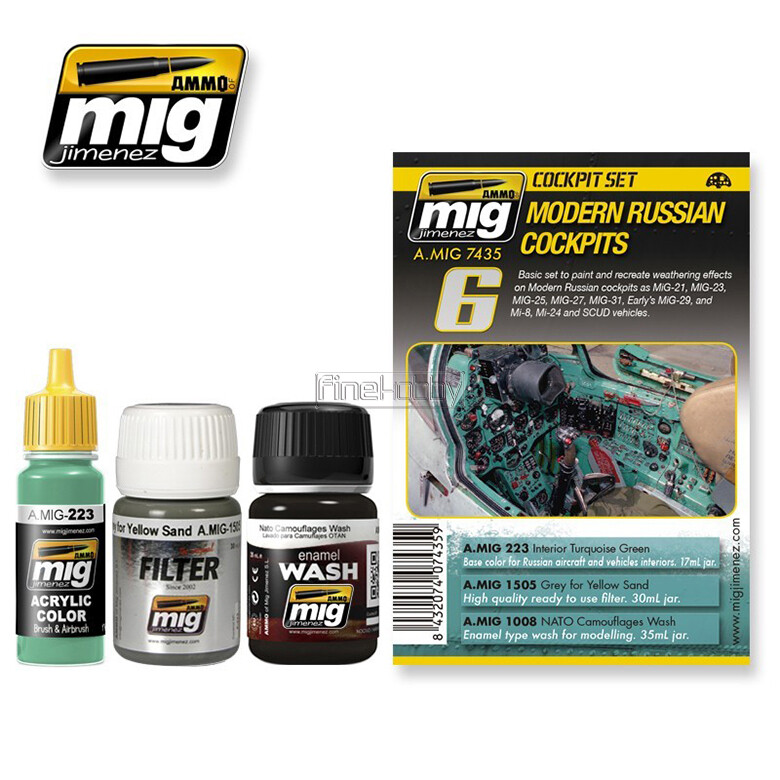 Include colors : A.MIG-0223 INTERIOR TURQUOISE GREEN A.MIG-1505 GREY FOR YELLOW SAND A.MIG-1008 DARK WASH