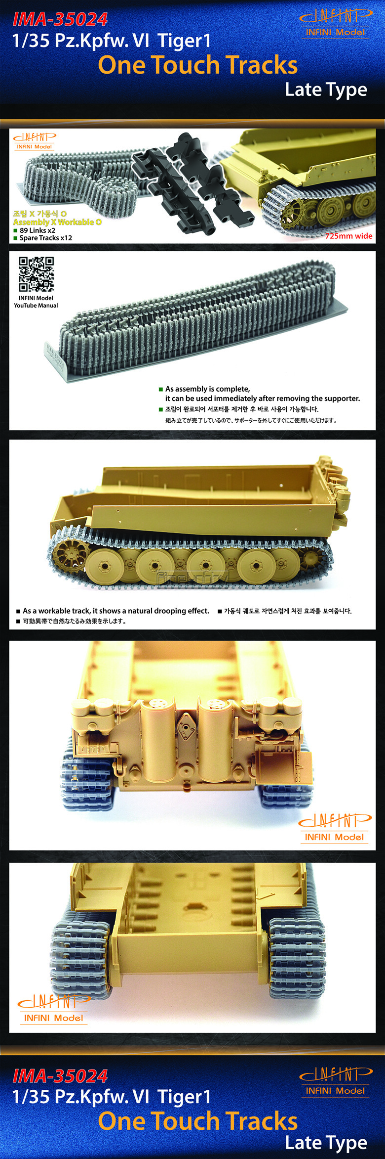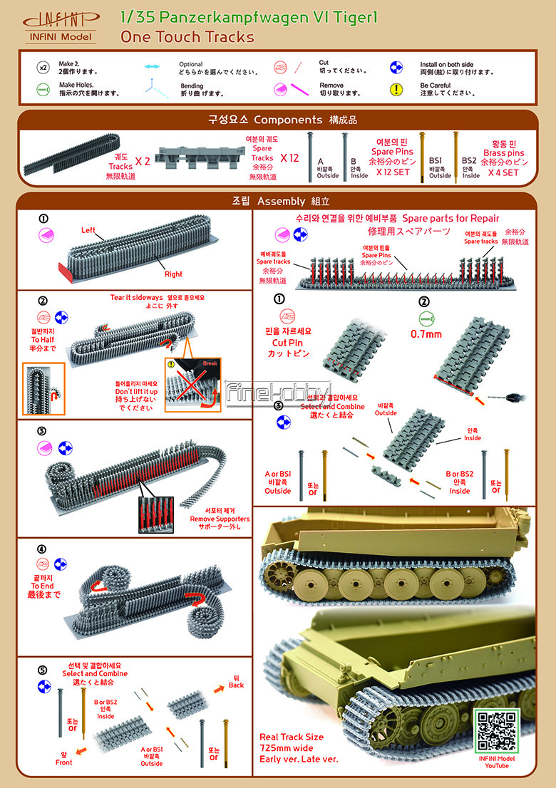 - ÀÌ Á¦Ç°Àº Detail up SetÀ̸ç Àû¿ë ŰƮ´Â º°µµ·Î ±¸ÀÔÇÏ¼Å¾ß ÇÕ´Ï´Ù(Á¢ÂøÁ¦, µµ·á º°¸Å). [1/35] Pz.Kpfw.VI Tiger Tracks Late Type [One Touch Tracks]