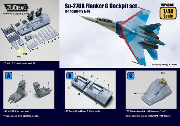 Su-27UB Flanker C Cockpit set (for Academy 1/48)